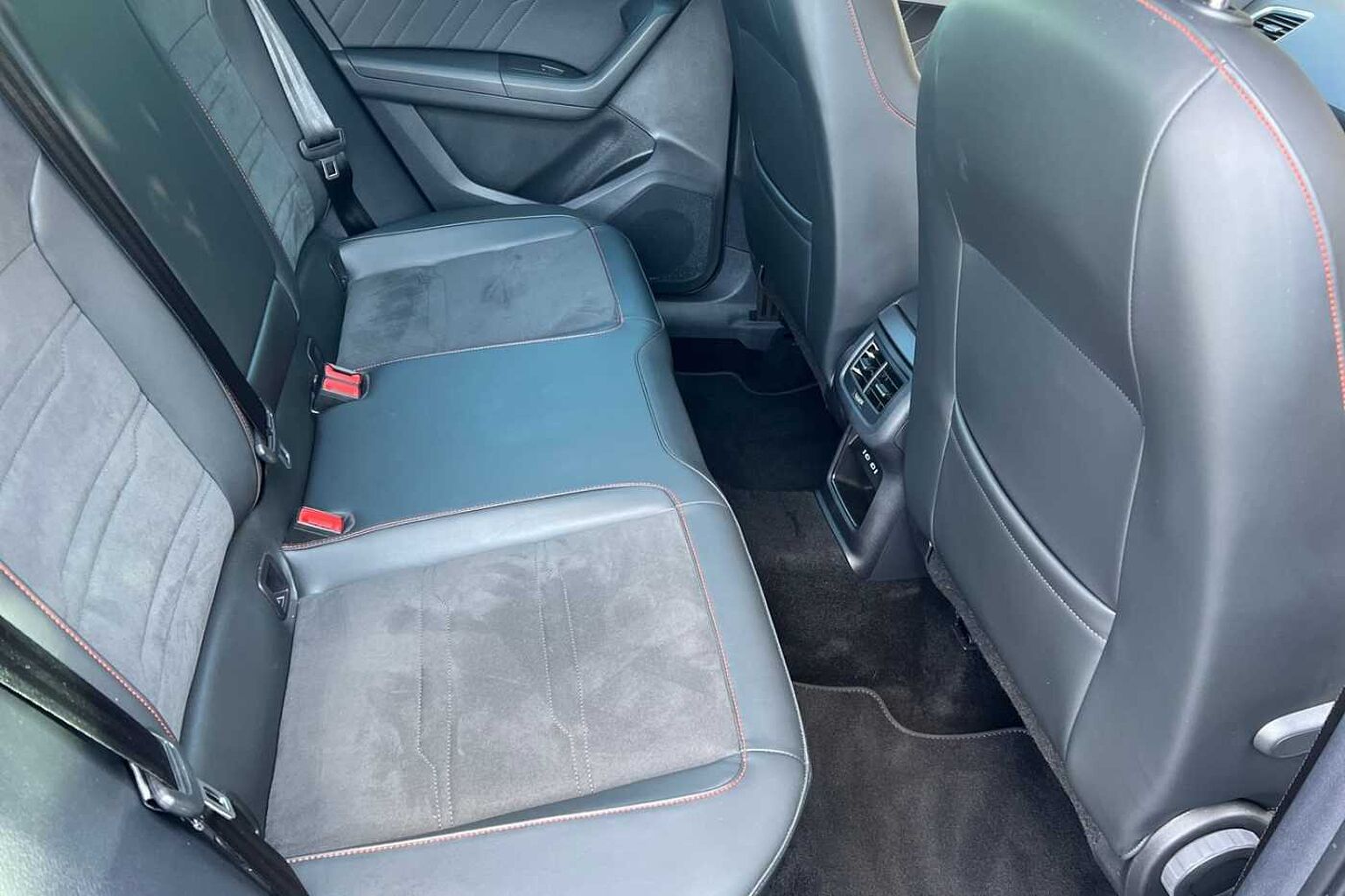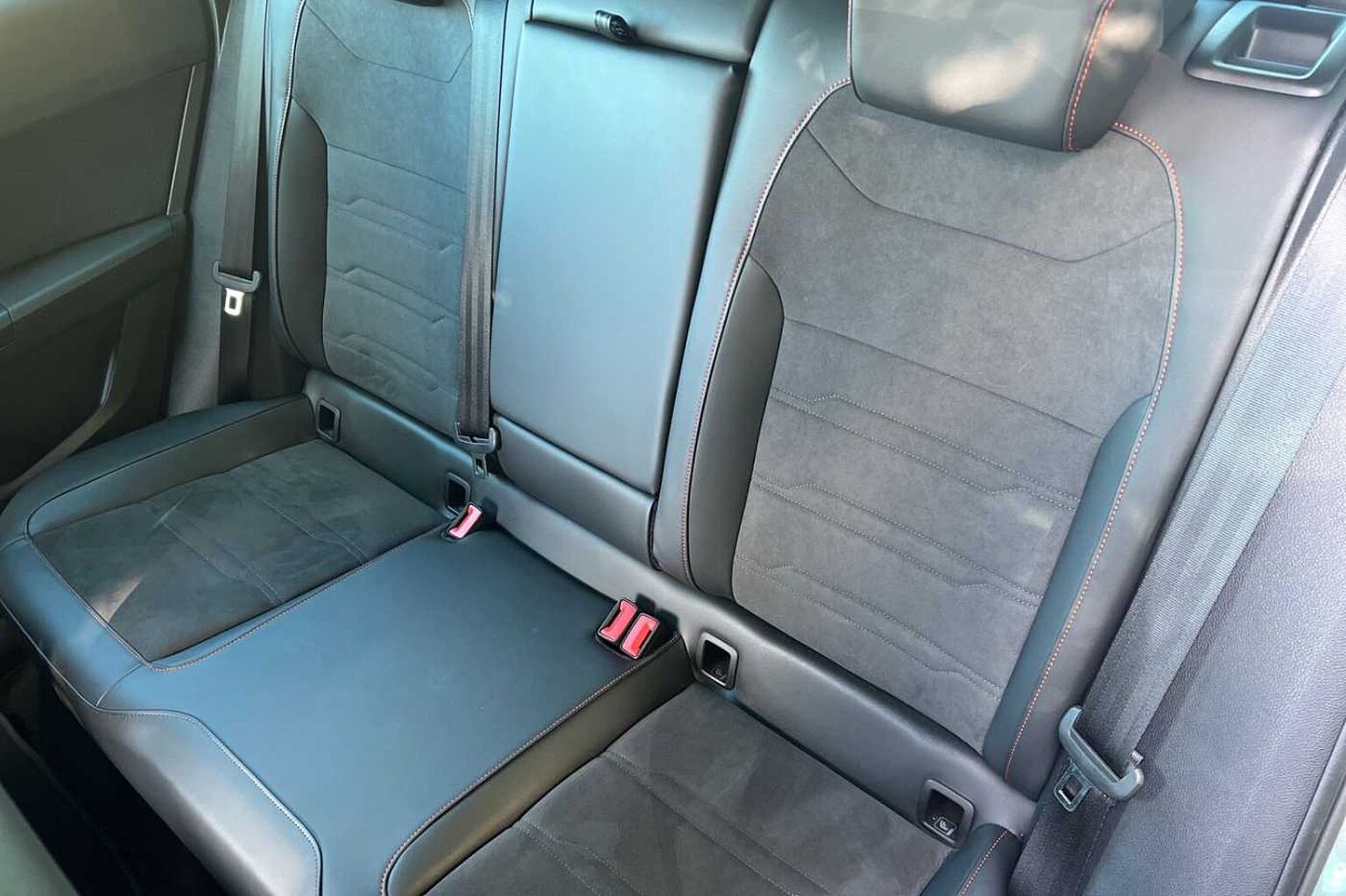 - Microsuede cloth - Black with red stitching and front comfort seats